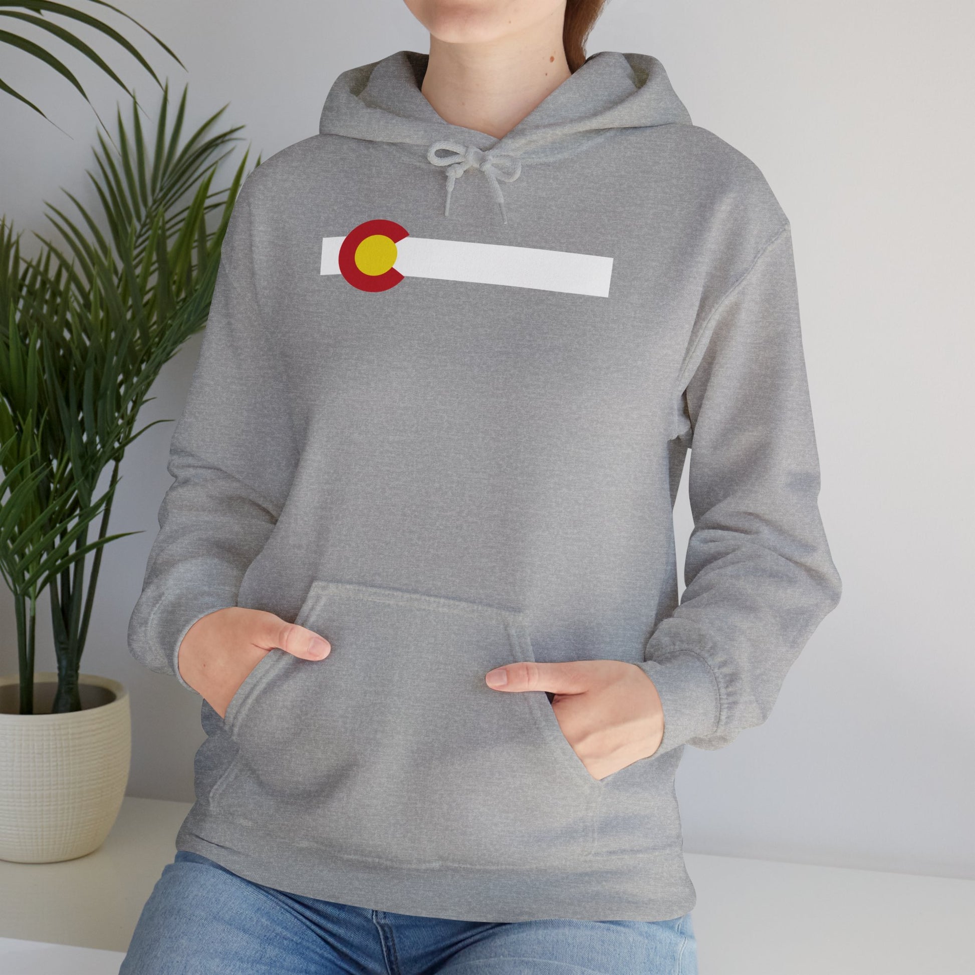 Printed on a 50% cotton, 50% polyester hooded sweatshirt.